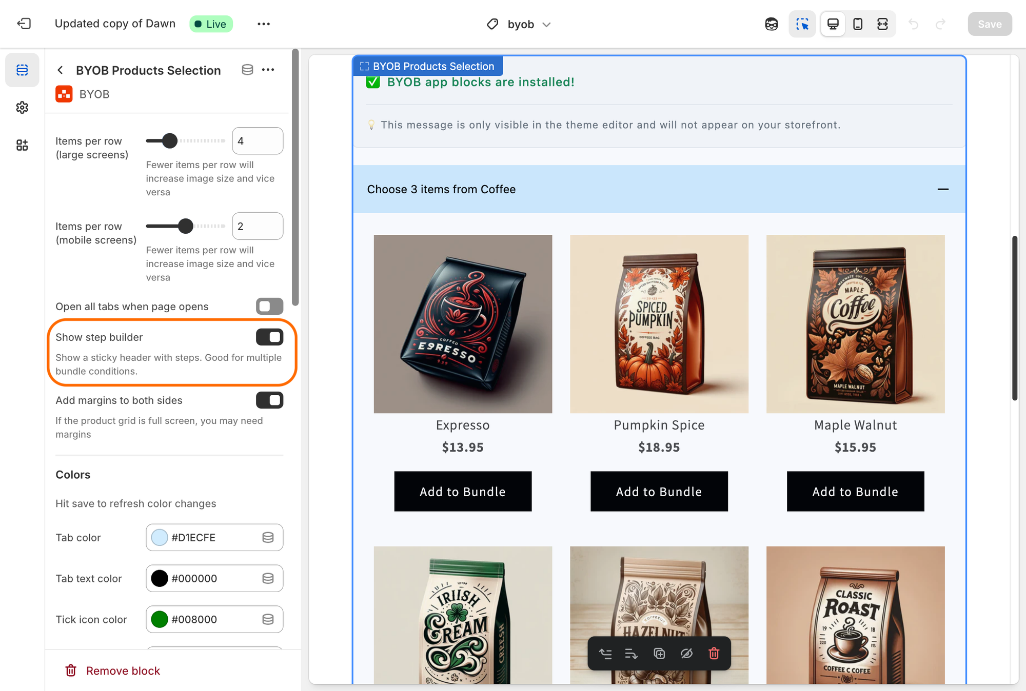 Today, we've added a new step builder on the BYOB Product Selection app block => Show step builder. It's useful to improve navigation when your bundle has multiple conditions.