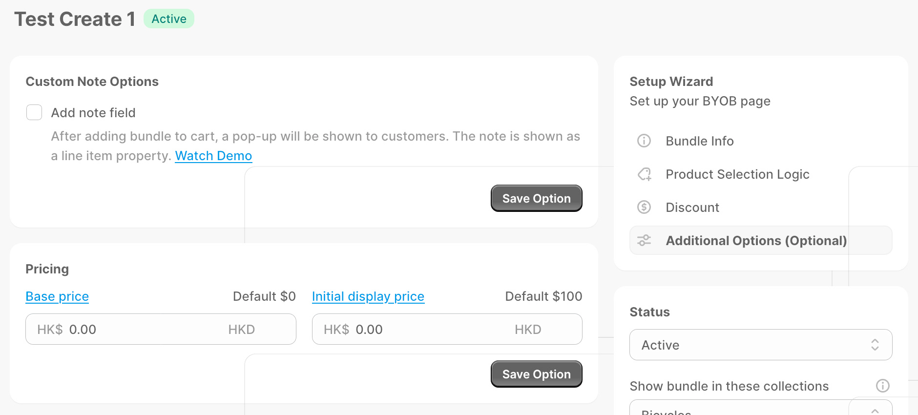 Starting today, this feature is now supported for all stores using the new cart transformation. When creating or editing a bundle with either a percentage-off or fixed-amount-off discount, you can now set a base price on the Additional Options page.