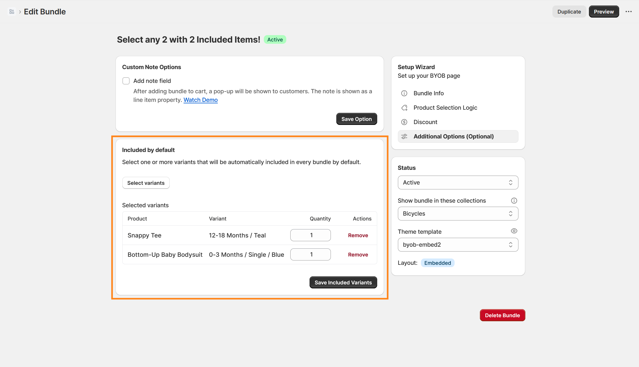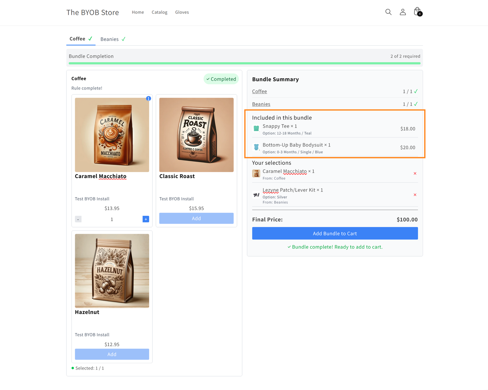 We’re pleased to introduce a highly requested improvement to BYOB — the ability to include specific items inside a bundle by default.